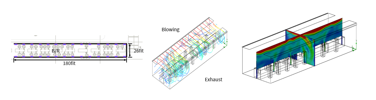 - Flow Trajectory 분석을 통해 공간의 전체환기를 계획하고 제어함.