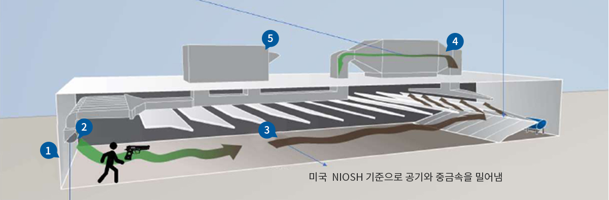 사격자가 (산화)납에 노출되지 않도록 등속기류 생성 |