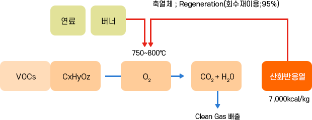 촉매 소각법(RCO) 유입되는 성분을 촉매식 소각기로 소각함