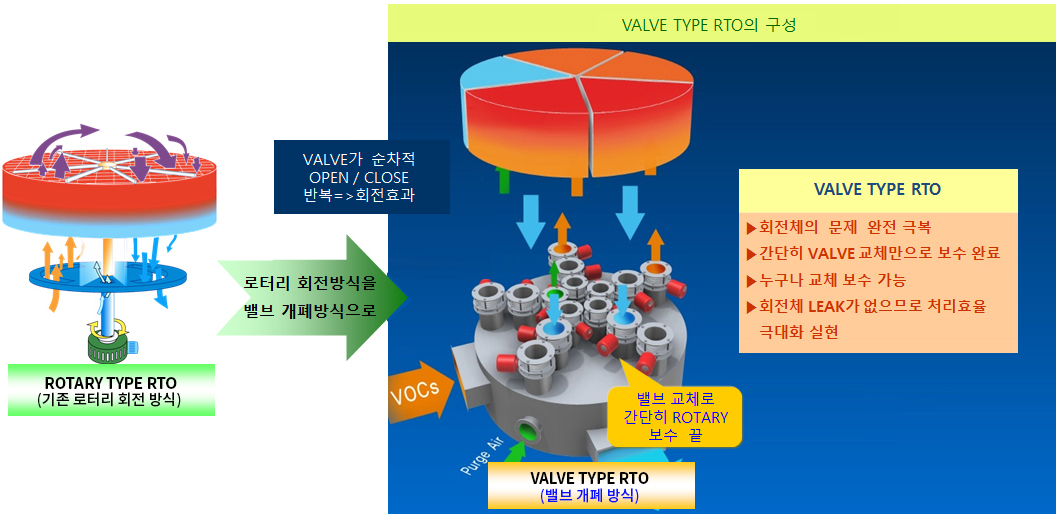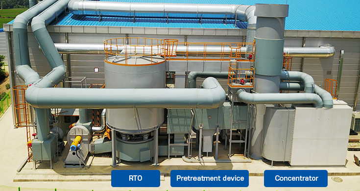 • RTO(Regenerative Thermal Oxidizer)은 휘발성유기화합물(Volatile Organic Compounds:VOCs)을 800℃의 고온에서 연소시켜 99%이상 제거하는 장치.